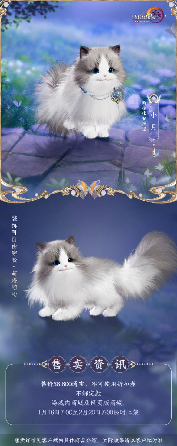 1、全新萌趣咪咿挂宠将在2025年1月16日上线,可在游戏商城、网页版商城购买;