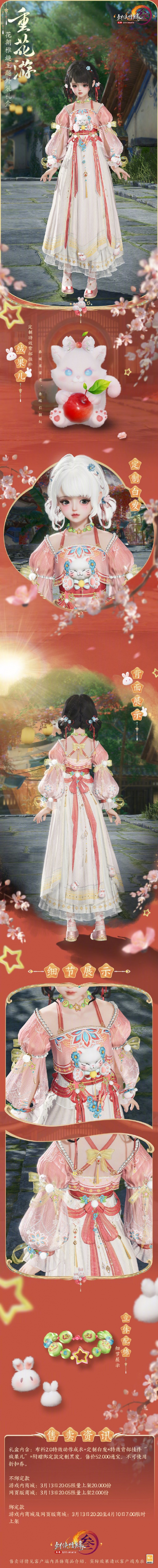 花朝稚趣主题时装重花游将在3月31日上线,很多玩家想知道该外观长什么样,该时装整体配色以白色+粉色+淡黄色为主,玩家购买外装还有专门的外装特效,礼盒售价52.000通宝,不可使用折扣券。接下来就由小编给大家带来了《剑网3》花朝稚趣主题时装重花游外观一览!
