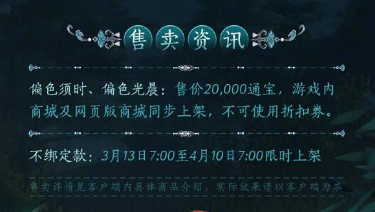 2、时装售价20.000通宝,且不可使用折扣券;