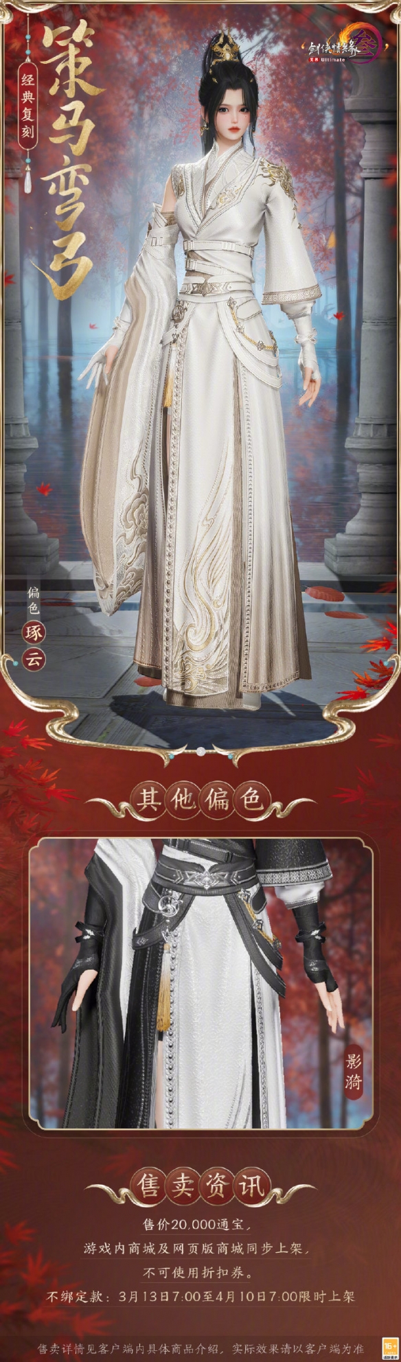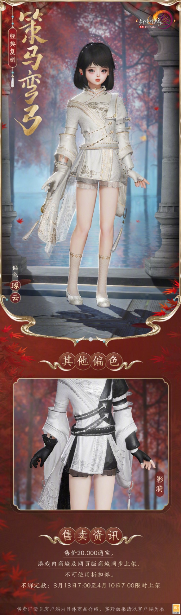 1、经典复刻外装【策马弯弓】将于3月13日限时上架游戏内商城和网页版商城;