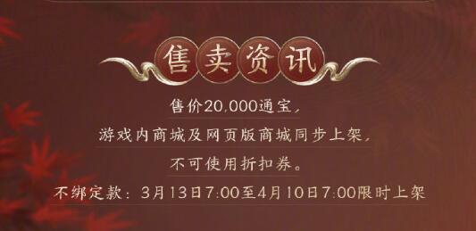 2、时装售价为20.000通宝,不支持玩家使用折扣券;