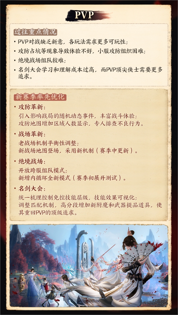 侠士们诟病的赛季初阵营拍卖装备使得PVP装备梯度失衡的问题,我们会在下赛季中取消阵营拍卖装备,而是以名剑大会内不生效的PVP大附魔替代。