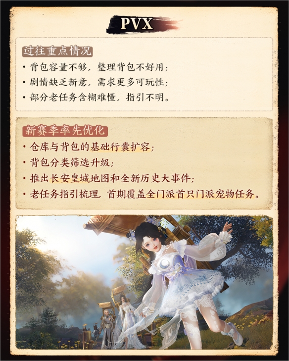 除此之外,我们还会率先完善全门派的首只门派宠物任务,为其梳理和整理任务指引,后续也将以减少口口相传和外部攻略的依赖为目标,优化更多任务指引,打造更好的体验。