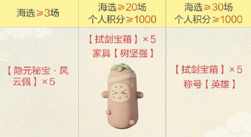 ②海选≥20场、个人积分≥1000:【拭剑宝箱】x5、家具【树坚强】