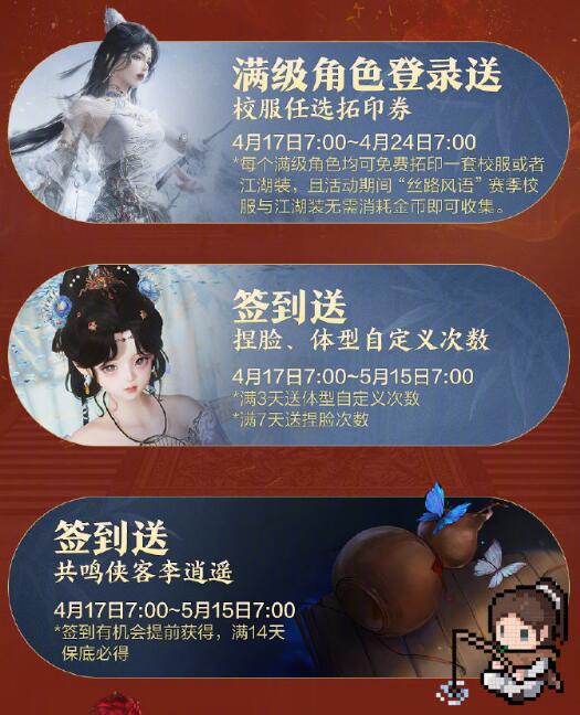剑网3官方已放出太极秘录版本公测福利,那么都有哪些呢,公测开启后玩家可以通过签到活动捏脸、体型自定义次数、校服任选拓印券、侠客李逍遥等等奖励,接下来就由小编给大家带来了详细的《剑网3》太极秘录版本公测福利一览!