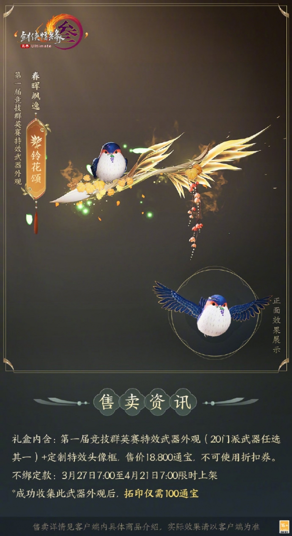 剑网3群英赛的武器外观已经放出,很多玩家都想知道各门派的武器长什么样,本次所有门派的武器外观都以白色和金色为主,武器旁边还有以各个门派为原型制作的小鸟,接下来就由小编给大家带来了详细的《剑网3》竞技群英赛全门派武器外观一览!