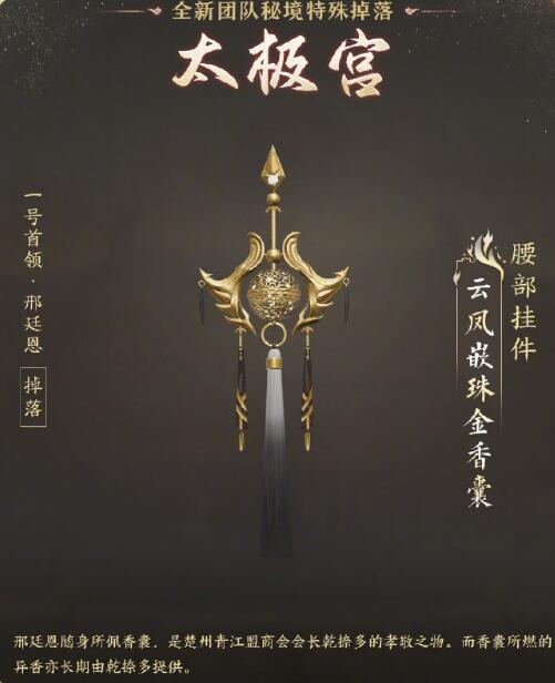 6、腰部挂件【云凤嵌珠金香囊】:一号首领掉落