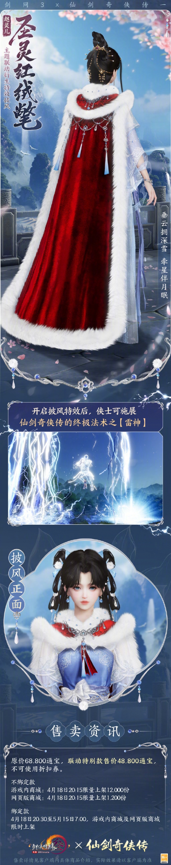 1、【圣灵红绒氅】为仙剑一联动的衍生披风,自带披风特效;