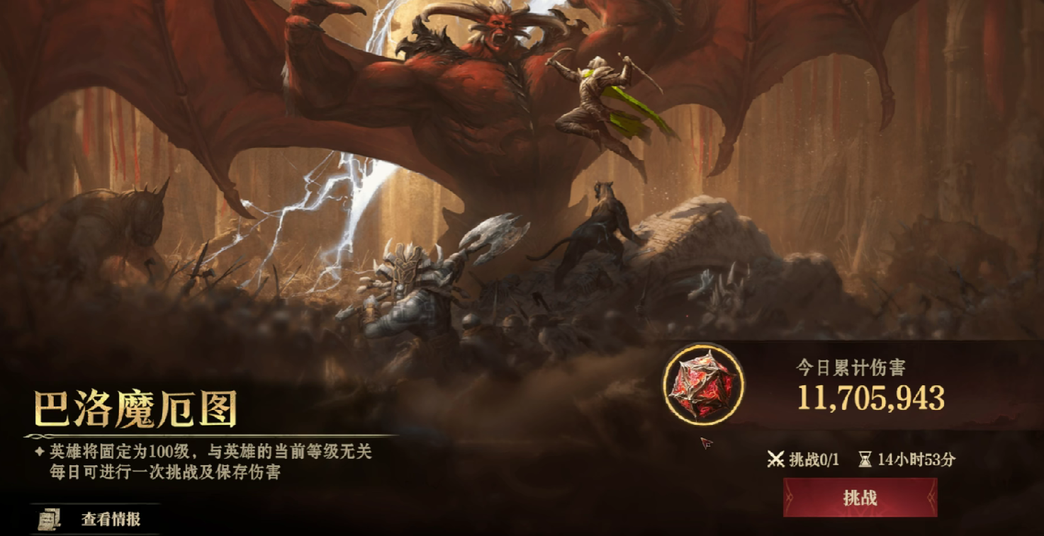 同比更新的新地图,巴洛魔厄图,属于无尽的boss挑战模式,玩家可以进入到魔物挑战赛中,每日进行一次伤害储存。