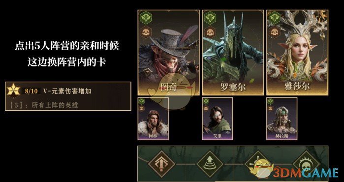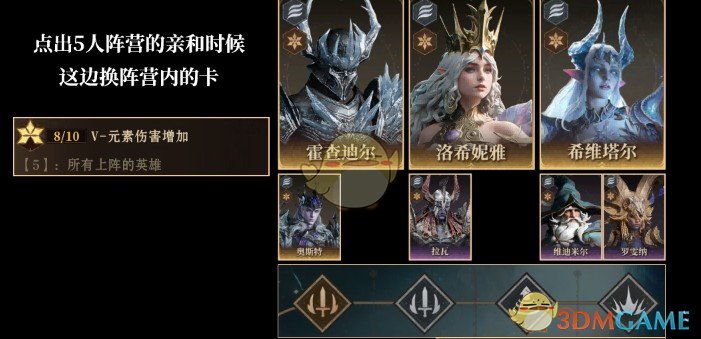 10-12阶段地精血量攻击力都不低,初入该阶段需要减伤加防一类的辅助。这里还是选择沃雷+西格丽德的组合,在拥全体面伤的同时能照顾队伍恢复和减攻,有大古也是极力推荐剩余三张英雄,推荐冰、光、毒三个体系的卡牌,看你哪个体系卡牌天赋及技能等级高。