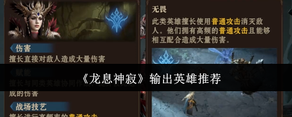 以上就是小编整理带来的龙息神寂输出英雄推荐,更多相关游戏攻略,请关注手游网!