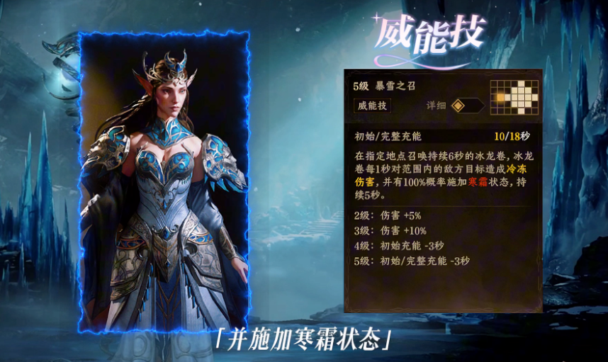 第2个为玩家们推荐的角色是洛希妮雅。她是一个冰霜系的法师,在施展技能之后将会放射出冰球,并且在敌人之间来回弹射。施展战技之后,将会给敌人增加一道标记,并且对其造成范围性的冰属性伤害,而施展威能技能之后则可以对敌方施展带有冰冻效果的龙卷风。她的所有技能都有极大的概率给对方添加寒霜状态,减缓对方的移动速度。