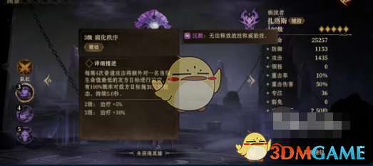 扎洛斯具有队长技能,带来的是一级攻击光环,所有战斗中都能提升己方目标24%攻击,如果没有更合适的队长技能,扎洛斯也是可以成为队长。被动技能腐化秩序,在第4次普通攻击时,将额外对一名当前生命值最低的己方目标进行治疗,并有100%几率对敌方目标施加沉默状态。对方被沉默之后,无论是战技还是威能技都无法释放,所以是现在非常有效的控制手段,长达5秒的沉默有可能扭转场上的局势。