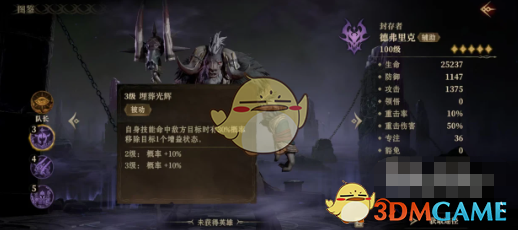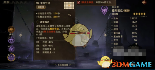 如果德弗里克成为队长,那么可以带来专注光环,在所有战斗中提升己方目标40点专注,因为对所有战斗生效,所以适用性还是比较出色的,如果遇到需要专注的战斗,可以考虑成为队长。被动技能埋藏光辉,自身技能命中敌方目标,时有30%概率移除目标身上的一个增益状态,这对于一些依靠增益状态流的阵容来说,还是有着很不错的发挥。