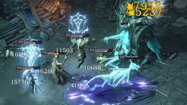 勒桑达的威能技粉碎冰暴是一个范围性的强大技能,能够对范围内所有敌方目标造成720%攻击力的冷冻伤害,并有75%的概率施加充能速度降低状态和1级专注降低状态,持续10.0秒。充能速度降低将使敌方技能的冷却时间延长,而专注降低则会削弱敌方的技能效果和命中率。