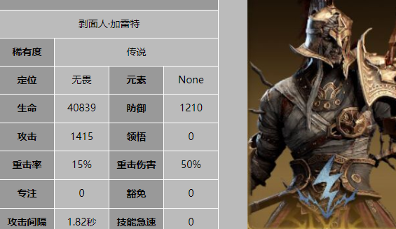加雷特是一位辅助型英雄,他的技能既能为队伍提供增益,也能对敌人施加减益。队长技能提升所有友军的豁免,被动技能在被施加减益时有几率免疫并增加威能。战技对敌人造成冷冻伤害并施加攻击降低状态,威能技则是对敌人造成伤害并有可能击飞和眩晕。加雷特的灵活性让他能够在不同战斗中发挥不同作用,既可以作为队伍的辅助,也可以在需要时提供控制效果。