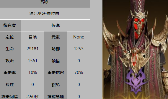 夏拉申的定位是召唤型英雄,他的技能专注于召唤物和黯蚀伤害。队长技能提升所有友军的生命值,被动技能为场上存活的友方召唤物提供伤害增加效果。战技对敌人造成黯蚀伤害,威能技能则召唤恐惧聚合体对敌人造成伤害。夏拉申适合与召唤物相关的阵容搭配,通过增加召唤物的伤害来提升整体输出能力。