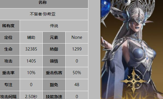 弥希亚以其独特的复活能力和生命光环队长技能而备受玩家喜爱。她的被动技能“星月垂怜”能在队友受到致命伤害时自动触发,为队友提供一层持续数秒的免死护盾,如果受到致命伤害的队友是远程英雄,还会额外获得隐身效果,避免被敌人集火。大招“全知者祝佑”则是弥希亚的杀手锏,弥希亚对所有存活的友方目标施加持续10秒的阵亡复活状态,随后复活所有死亡的友方目标,并将其恢复至75%最大生命值。被复活的友方目标还会获得阵亡前所持有的75%威能。此外,该技能还会对所有友方目标施加10秒的免疫减益状态,并对远程英雄施加10秒隐形状态。这一技能在关键时刻几乎可以逆转整个战局,为队伍赢得宝贵的反击机会。