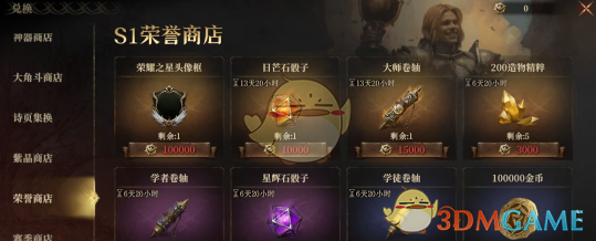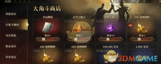 日常获得这两种骰子的主要途径就是通过商店购买。首先来到大角斗商店,这里就有两种骰子出售,所需要消耗的道具是角斗场印章,只要玩家在大角斗场中获胜就可以获得纪念章。