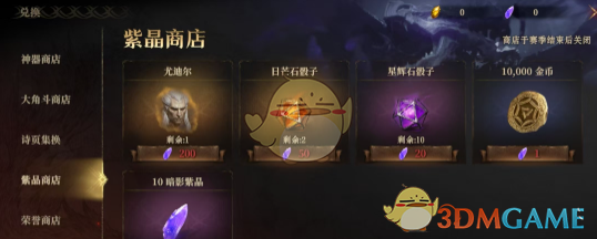 第2个是在紫晶商店中,紫晶商店消耗的是暗影紫晶,参与重铸帝国之勇,可以获取的道具。接下来是荣誉商店,荣誉商店兑换需要的道具是荣誉勋章,还有赛季商店,这里需要消耗的道具是纯净沙核,是由时杀回响转化来,可以在每个赛季的赛季商店中兑换奖励。除此之外,如果要想获得更多的日芒石骰子,还可以采用直接购买方式。花费龙髓石可以直接购买到日芒石骰子,具体价格是350枚龙髓石兑换一个,这一点也是需要大家在游戏里稍微进行氪金的地方,也是拉开玩家差距的重要方面。