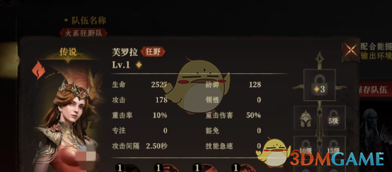 芙罗拉是队伍中的核心输出,也是作为队长人选,在所有战斗中都能提升30%攻击力。被动契约仆从,当友方目标狂野判定成功时,魔宠就自动对友方目标当前的攻击目标发射火球。这样的好处是和埃里奇配合起来,埃里奇本身就是高频狂野英雄,每当友方目标狂野判定成功,自身狂野成功几率就会额外增加,最多能叠加到30%,所以判定的成功率是非常高的。埃里奇大招可以召唤陨石,对随机敌方目标造成高额伤害,芙罗拉大招是创造一个持续十秒的火焰漩涡,为目标持续造成高额输出。最后一个菲莉丝蒂,它的大招是发射火焰激光,对目标造成三次伤害且无视护盾。