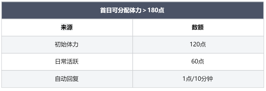 首日体力消耗完毕后