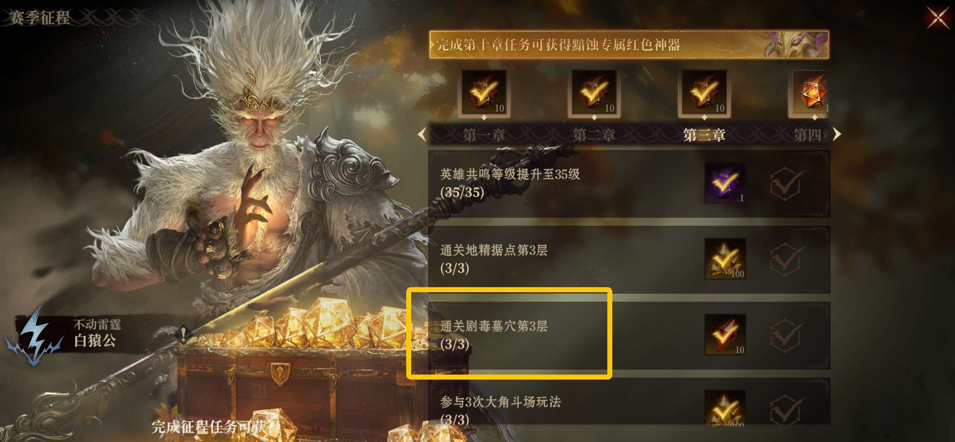 为完成赛季征程前三章任务