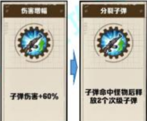 子弹增伤为子弹分裂的前置,需要先选子弹增伤后才会有几率出子弹分裂,且子弹分裂在游戏当中是非常强大的词条。