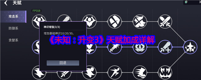 未知升变3天赋怎么加点?天赋非常重要,有的人最后属性点几十万,有的人灵魂很多,有的人伤害高,有的人会心率高,就是天赋点的不一样,加成不一样。接下来给大家带来了《未知:升变3》天赋加成详解!