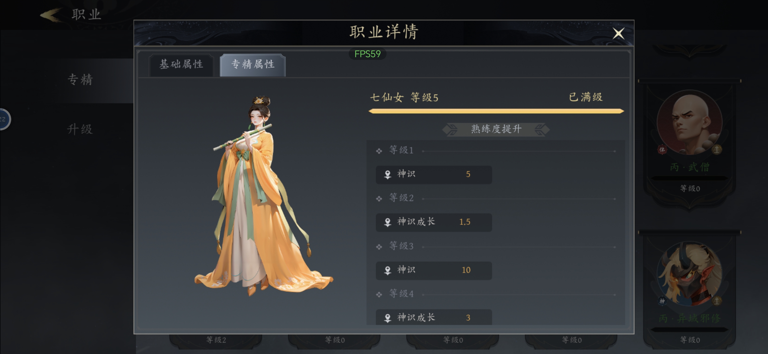 ①进游戏选神识职业,青皮,第三个用诸葛亮,最后一个用天女,注意最后一关要凑齐五行调和。
