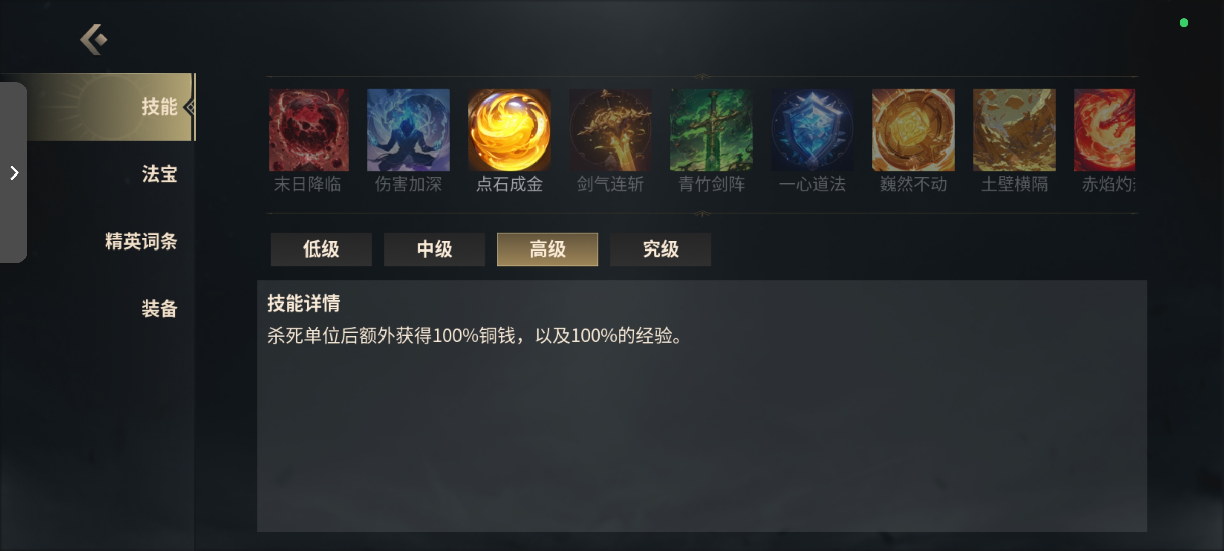 当天赋点可以点两个被动和主动的时候,我建议选点石成金和心动,一个加发育一个加伤害,也可以选其他的 无伤大雅。