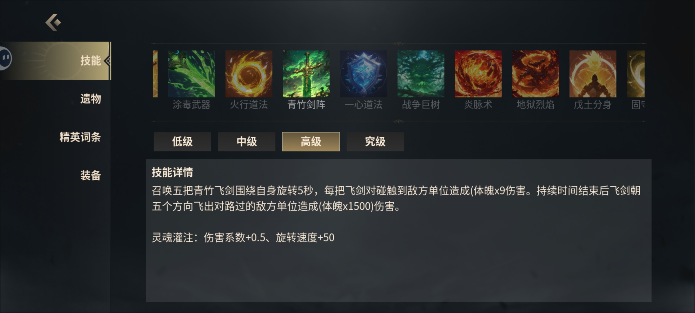 注意青竹剑阵只能是高级以上的才有用,低级和中级没有一点用,前期不要青竹