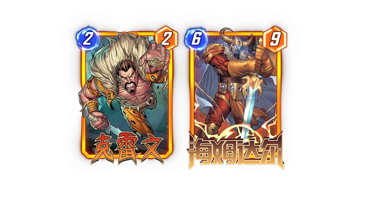 作为在新手期就能体会到的移动流卡组核心,这两张卡其实有着更大的用处。【克雷文】本身的结算机制比较特殊——如果在同一区域内有多张卡牌随【克雷文】一起移动,【克雷文】也能触发加攻效果。这就意味着即使我们不带其它的移动收益卡牌,而仅仅是把【克雷文】所在的区域填满,便可在最后一回合打出【海姆达尔】使自己的所有卡牌向左移动,从而触发最大化的收益。这套组合技还有更具战略性的玩法,即让对手判断失误——假装自己要拼中、右两路,结果话锋一转来到左、中两路,让对手的战力部署计划被瞬间打乱。