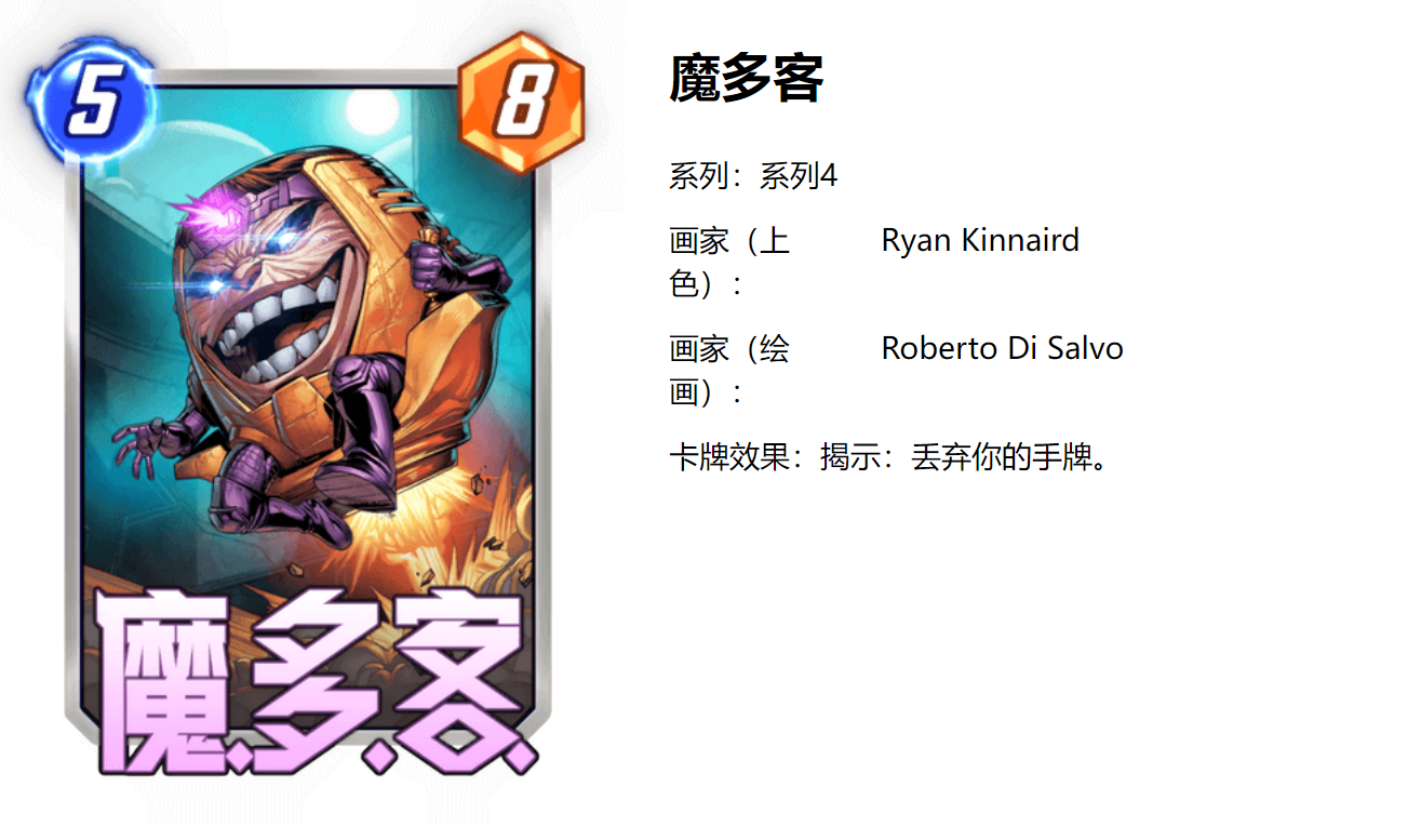 毫无疑问这位人形计算机是丢弃卡组的重要核心卡,他能稳定地让你在五回合丢弃所有的卡牌,那么首先我们就将他配合一些丢弃卡牌能获得战力提升的组件以及一些被丢弃后能产生不同效果的卡牌,在这样的卡组中,5回合的稳定全部丢弃能让你打出巨大的爆发,其次我们也可以将他搭配在隐形女海拉体系中,只要丢弃能产生收益的卡组都会看到默多克的身影。