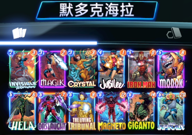 第二套卡组笔者为大家推荐默多克海拉的构筑,这套牌你只需要抽到隐形女,默多克和海拉,就能让你在不被干扰的情况下,轻松地取得胜利,因为几乎没有任何卡组能面对默多克海拉带来的超强爆发,同时就算没有抽到相关组件,也能利用魔剑客,钢铁侠,狂攻和法庭展开Plan B,这套卡组可以说是当你不想动脑时的最佳选择。
