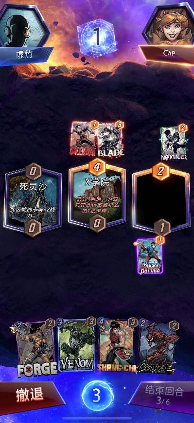 SNAP时机:本套卡组用锻造、屠杀、反浩克和死灵锁养大金刚狼后被毒液吃,手里有牌能把这个combo打出,可以考虑提前snap最后给大家做一个实战演示:第一回合:第一回合过。
