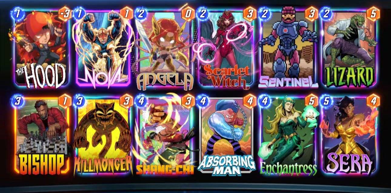 eyJDYXJkcyI6W3siQ2FyZERlZklkIjoiSG9vZCJ9LHsiQ2FyZERlZklkIjoiTm92YSJ9LHsiQ2FyZERlZklkIjoiQW5nZWxhIn0seyJDYXJkRGVmSWQiOiJTY2FybGV0V2l0Y2gifSx7IkNhcmREZWZJZCI6IlNlbnRpbmVsIn0seyJDYXJkRGVmSWQiOiJMaXphcmQifSx7IkNhcmREZWZJZCI6IkJpc2hvcCJ9LHsiQ2FyZERlZklkIjoiS2lsbG1vbmdlciJ9LHsiQ2FyZERlZklkIjoiU2hhbmdDaGkifSx7IkNhcmREZWZJZCI6IkVuY2hhbnRyZXNzIn0seyJDYXJkRGVmSWQiOiJTZXJhIn0seyJDYXJkRGVmSWQiOiJBYnNvcmJpbmdNYW4ifV19## To use this deck, copy it to your clipboard and paste it from the deck editing menu in Snap.核心卡牌:塞拉、安吉拉、毕肖普、哨兵机器人、尚气、女巫师