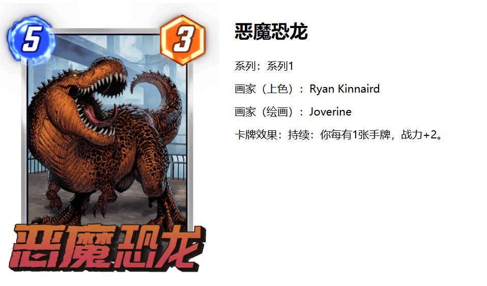 恶魔恐龙:作为卡组的主要攻击点,他的力量会随着手牌数量的增加而增加。