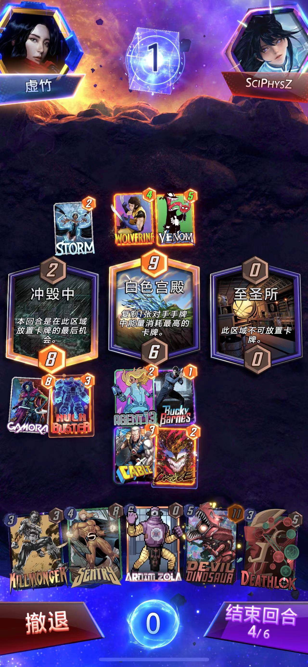 第三回合:继续在中路下电锁,准备下个回合用屠杀摧毁中路,看对手下了金刚狼,猜测一下对面大概率是纯摧毁卡组。