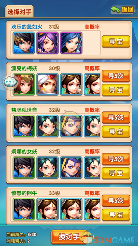 小编推荐大家选择概率高,且等级不能比自己高太多的号抢夺,这样,既保证能够打败对手不浪费精力,又能保证抢夺到宝物。