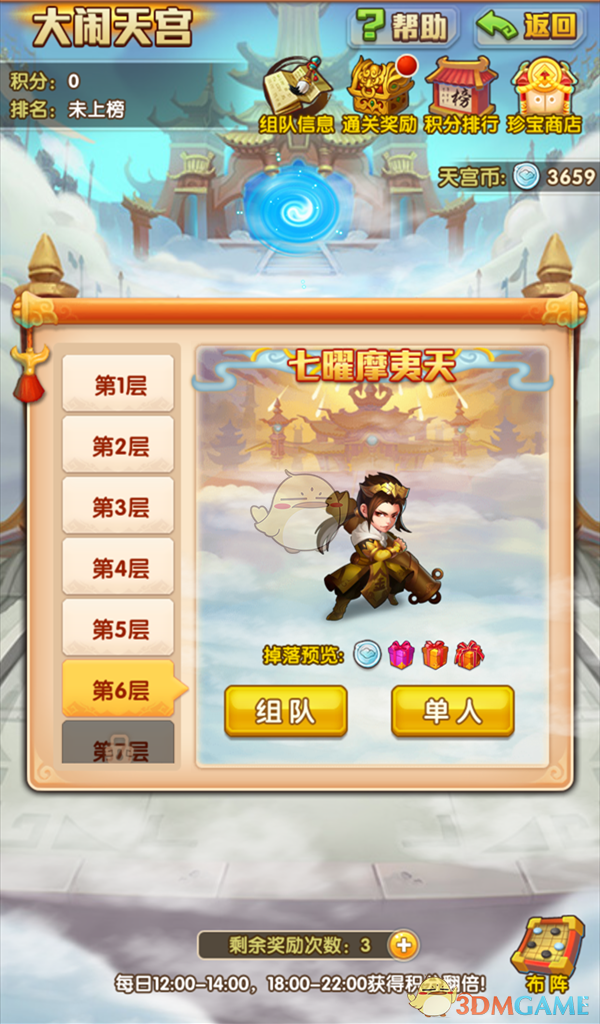 ②.通关一层天宫,可获得对应的通关奖励(仅单人通关可获得)