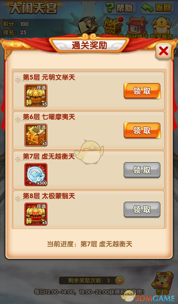 大闹天宫每通关一层都可以领取通关奖励