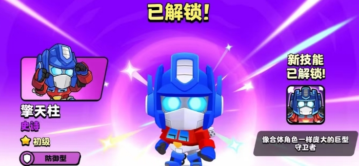 擎天柱到三星以后可以解锁一个自动回血的被动技能。得到擎天柱的方法也不难,活动一上线,玩家就可以开始收集能量晶体解锁擎天柱。除此之外擎天柱还有,初级、经典、高手这三种不同形态可以切换。