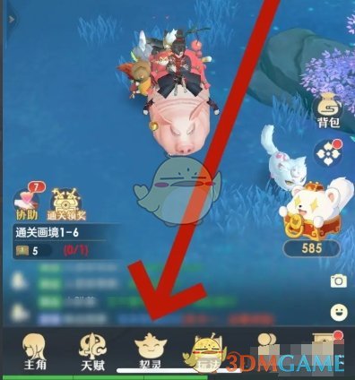 1、首先我们点击游戏主页下方的契灵玩法前往;