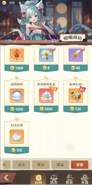 荣誉商店的道具以实用道具为主,其中有契灵提升境界所需的筑基/结丹/巅峰/大能御灵丹,还有识海节点材料、识海技能激活材料,以及命魂礼包。这些都是提升实力的重要道具。