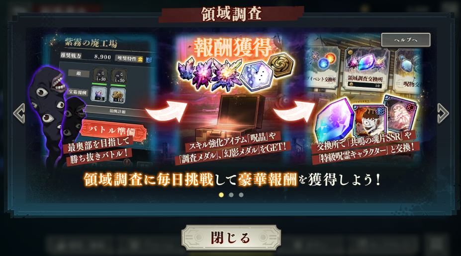 在《咒术回战:幻影夜行》游戏中由玩家亲手操控术式,通过犹如TV动画一般的战斗祓除咒灵吧,战斗将以高画质展开。编成自己专属的队伍,祓除强大的咒灵吧。接下来就由小编给大家带来了详细的《咒术回战:幻影夜行》领域调查奖励一览。
