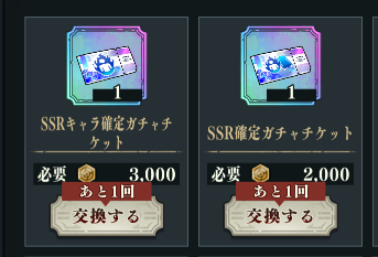※5/21追加的这两张SSR必得券新手可以优先换来补充box,box齐全的老玩家可以等伪限定下放后再兑换使用(左边SSR角色必得券 右边SSR必得券)