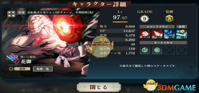 3技能:花御的核心技能,3回合内的全体减攻debuff使其成为防御型角色的关键,帮助减少敌人伤害。