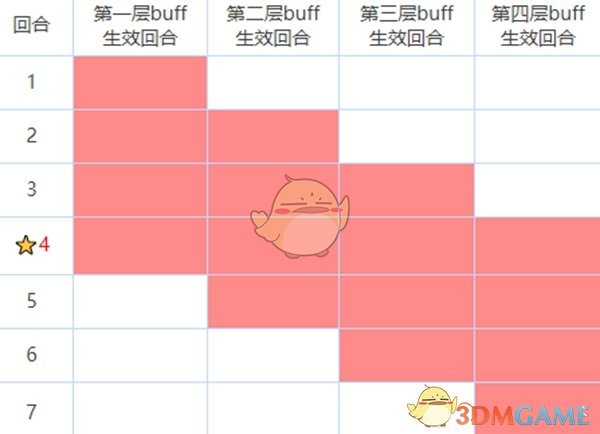 一、第四回合是buff层数最多并且伤害最高的回合。