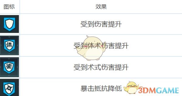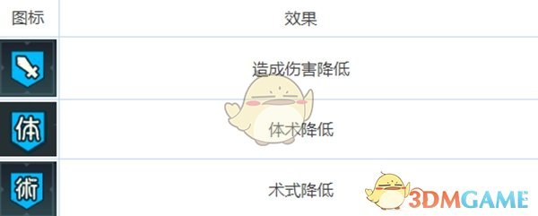 三、debuff也有三种,为易伤类、减伤类和特殊类。